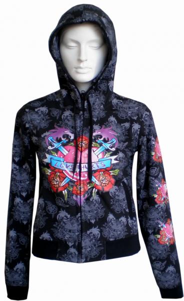 mikina s kapucí, na zip, s potiskem, foto detail